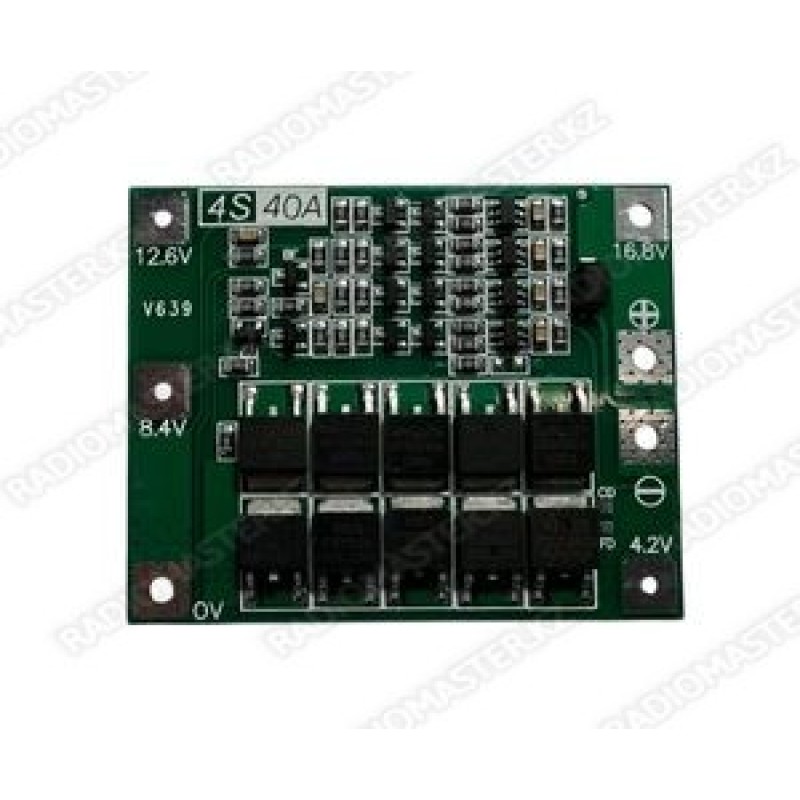 Плата BMS 4S40A с балансировкой, 16.8v-18v, 40A (4.2v*8.4v/12.6v/16.8) 3 аккум 18650, 46*60*3.4mm